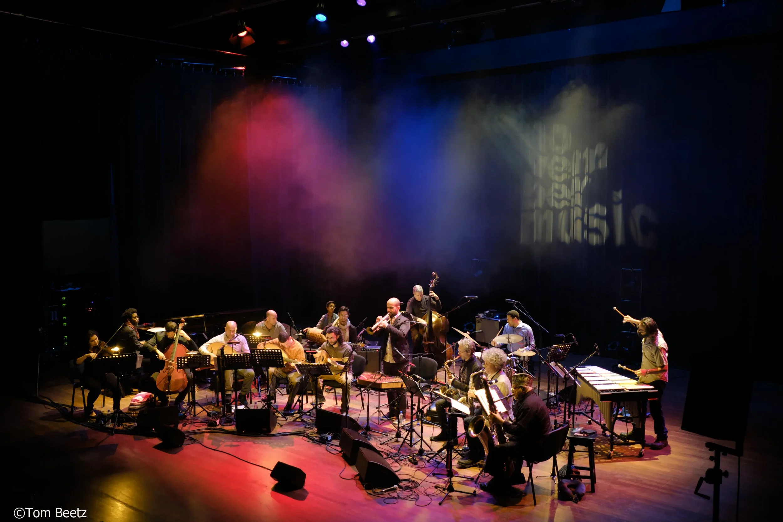 The 17 musicians of the Rivers of Sound Orchestra represent a variety of traditions, playing Middle Eastern, Indian and Western instruments such as oud, buzuq, santur, joza, cello, saxophone, oboe, mrudangam, frame drum, drum set, and re-tuned piano, vibraphone, and guitar. During the rehearsal and performance process, individual cultures melt away and a feeling of camaraderie emerges. Through improvisation, the group forms a non-hierarchical social microcosm based on compassion and connection in the collective pursuit of beauty.